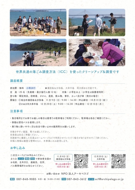 参加費:無料 (瀬居島&沙弥島、大串半島 両方参加も可能です。)